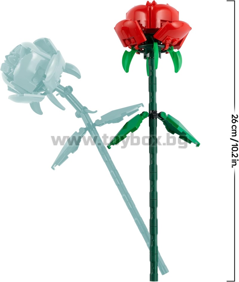 - Включва 2 червени рози за изграждане с регулируеми стъбла;