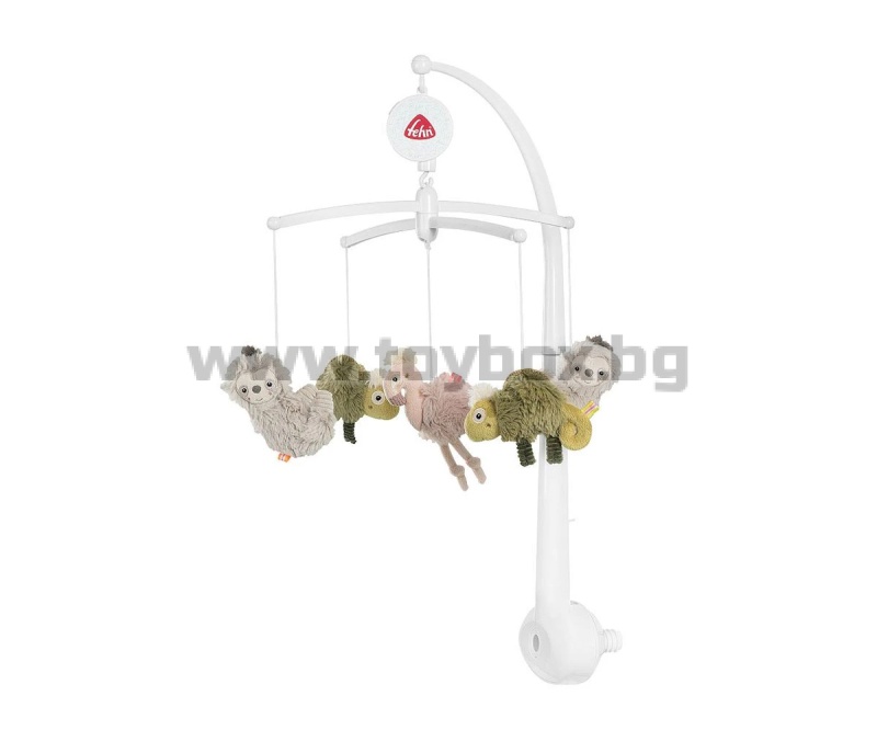 Музикална въртележка Lazy, Crazy & Pink ще зарадва всяко бебе със своите очарователни фигури – малки ленивци, хамелеони и фламинго. През деня те забавляват и стимулират играта, а вечер нежните цветове успокояват и подготвят за сън. Механичната кутия за музика възпроизвежда любимата мелодия „Лека нощ“, която кара фигурките да танцуват и приканва бебето да слуша. При нужда може лесно да се спре чрез удобния вграден On/Off бутон. Въртележката се закрепя лесно към бебешкото креватче и е не само верен помощник за приспиване, но и сладка украса за детската стая.