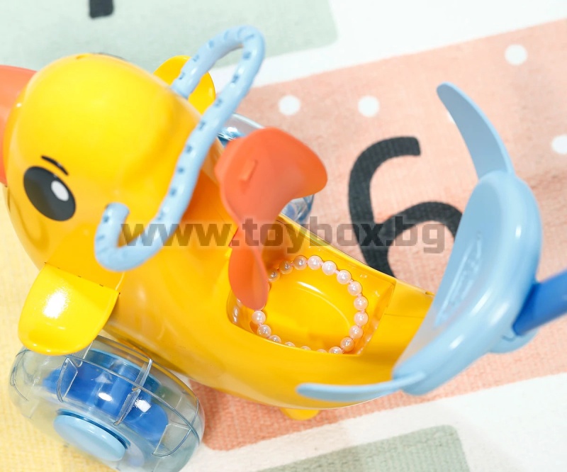 - Шумящи колела със сини топчета – стимулират слуха и допринасят за сетивното развитие;