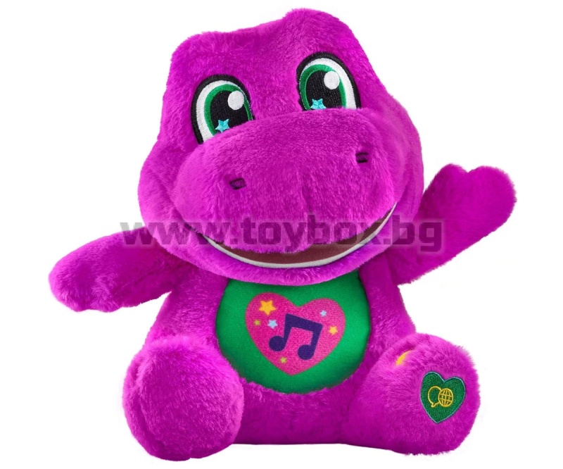 Запей с Барни! Натисни коремчето му и тази мека плюшена играчка с височина 26 см ще започне да пее познати песнички от сериала „Светът на Барни“, включително любимата „I Love You! (I Love Me Too!)“. Децата са поканени да пеят заедно с него и да се забавляват с ритъма на приятелството!
