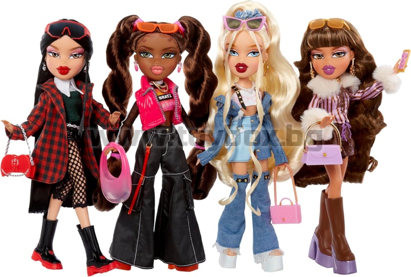 - Включва: модна кукла Bratz с тоалет, слънчеви очила, мобилен телефон, обеци, колан, лак за нокти, сешоар, преса за коса, чанта, четка за коса и плакат.