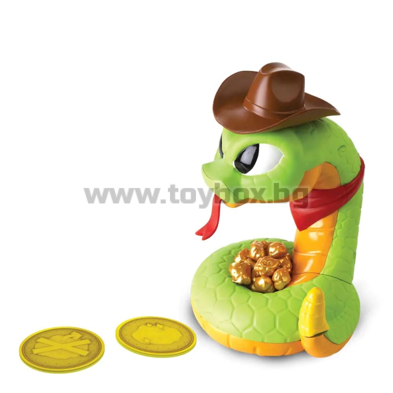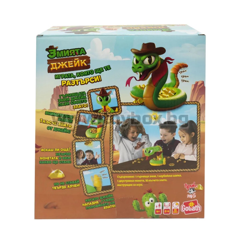 Гърмящата змия Джейк е откраднала твоето злато! Внимавай за зловещото му тракане и се опитай внимателно да върнеш златото обратно. Но бъди нащрек – едно грешно движение и Джейк ще нападне! Неговото тракане засилва напрежението, докато чакаш големия скок. Ако Джейк те изненада в твоя ход, трябва да му върнеш половината от събраните късчета злато. Победител е играчът с най-много злато, когато последният къс бъде взет.
