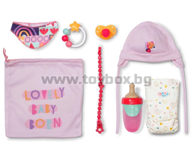 BABY born Комплект за новородено – грижовни аксесоари за първи игри с кукли. Когато новата кукла пристигне у дома, започва едно специално приключение за малките „родители“. С комплекта BABY born за новородено децата от 3 години нагоре получават идеалния стартов пакет, за да се грижат с любов за своята кукла от самото начало.