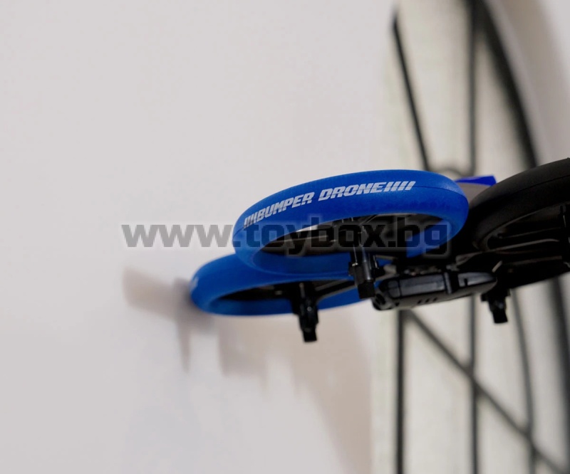 Представяме Bumper Drone Vision – версията на Bumper Drone Lite! Това е изцяло нов и иновативен 3-канален дрон с 2.4GHz управление, оборудван с емблематичните защитни Bumper пръстени, които му позволяват да се удря в стени без повреди! Снабден е с камера, която може да предава видео в реално време чрез WiFi и специално приложение (APP). Благодарение на функциите за автоматично излитане/кацане и автоматично задържане във въздуха, управлението е изключително лесно. Освен това Bumper Drone Vision може да изпълнява и 360° каскадни превъртания, за да впечатлиш приятелите си! Подходящ за деца над 8 години.