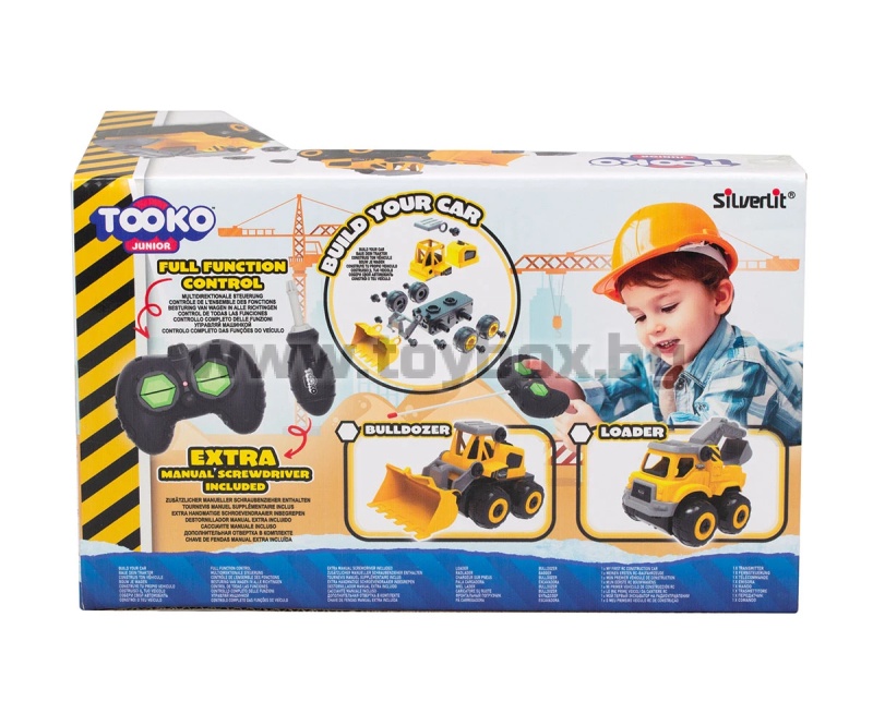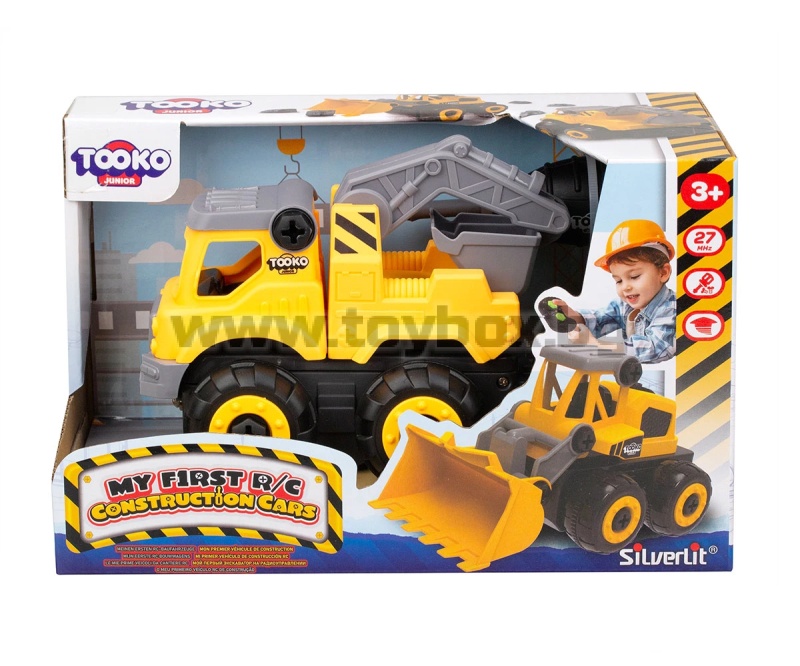 MY FIRST R/C CONSTRUCTION CARS е радиоуправляем строителен автомобил, който можеш да сглобиш сам! Използвай включената ръчна отвертка, за да сглобиш и разглобиш превозното средство. След това управлявайте напред и назад с 27MHz дистанционно управление, като достигате скорост до 5 км/ч и се наслаждавате на светлинни ефекти. Лесен за управление и изключително забавен за малки деца! Налични са 2 различни модела. Препоръчителна възраст: 2+ години.