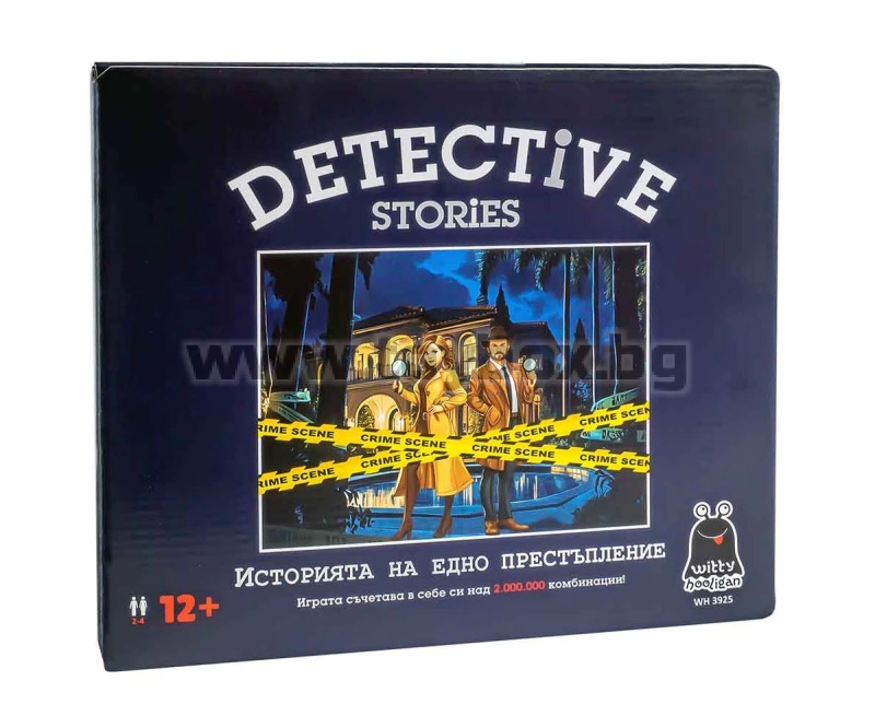 „Детективни истории“ ще ви потопи в атмосферата на малко швейцарско градче от миналото, където е извършено мистериозно убийство на уважаван колекционер – господин Харис. Играчите ще разследват случая, разглеждайки досиетата на четирима заподозрени, за да открият кой е извършил престъплението. По време на играта ще се анализират мотивите, отношенията с жертвата, доказателствата от местопрестъплението, както и навиците, здравословното състояние и психологическият профил на заподозрените. Подходяща за 2–4 участници над 12 години, играта развива логика, концентрация и памет. Благодарение на над 2 милиона възможни развоя, тя предлага различен сценарий всеки път.