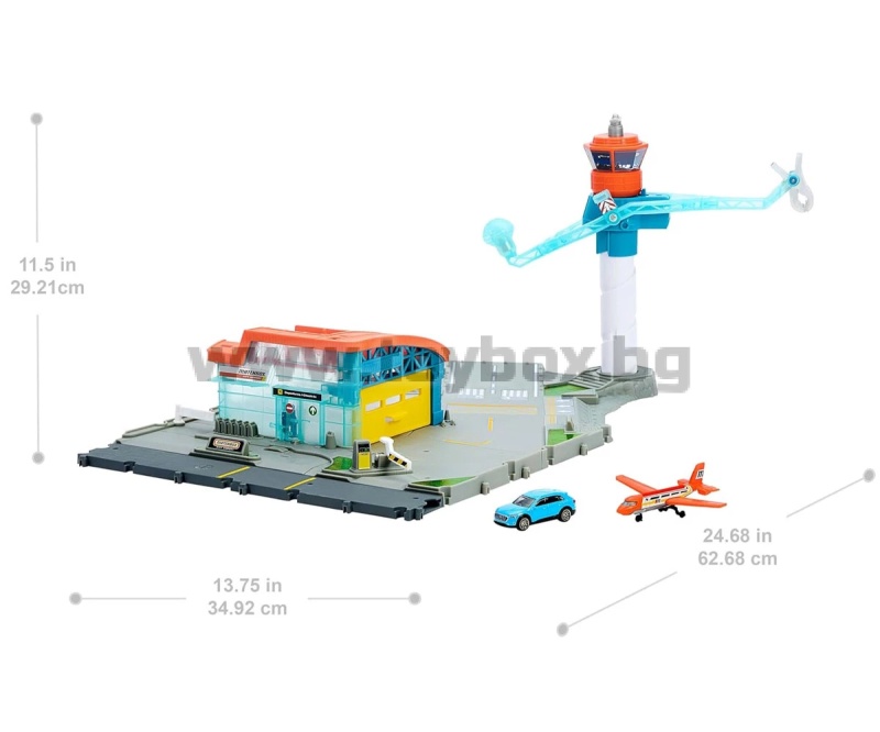 - Разширяваме летището: Основата може да се свърже с други Matchbox или Hot Wheels писти и комплекти за още по-мащабна игра (продава се отделно);