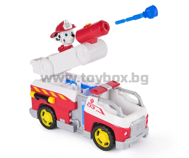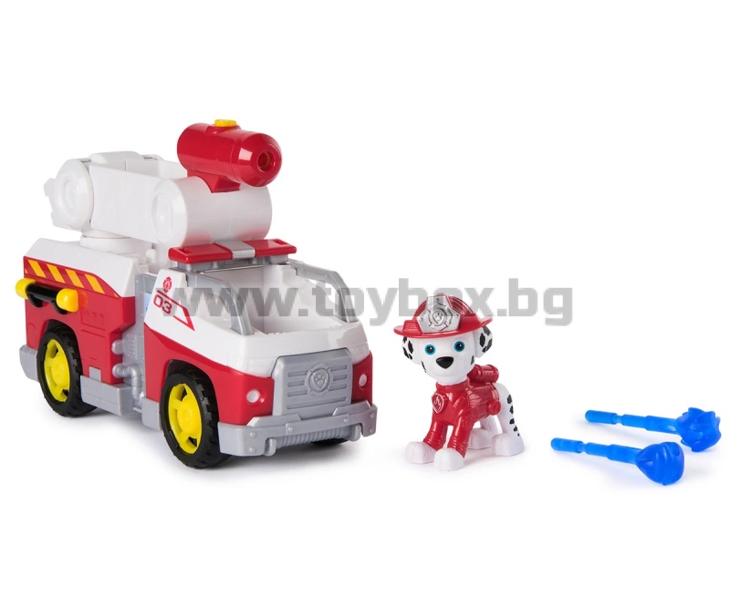 - Пожарната кола на Маршал е с размер 20 см и идва с 5 см фигурка на Маршал – готов за вълнуващи спасителни мисии!