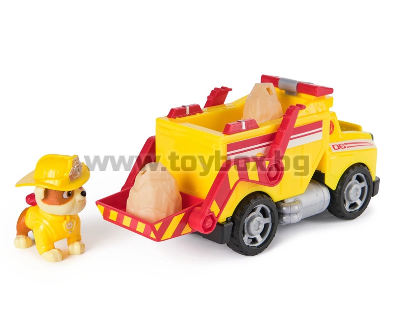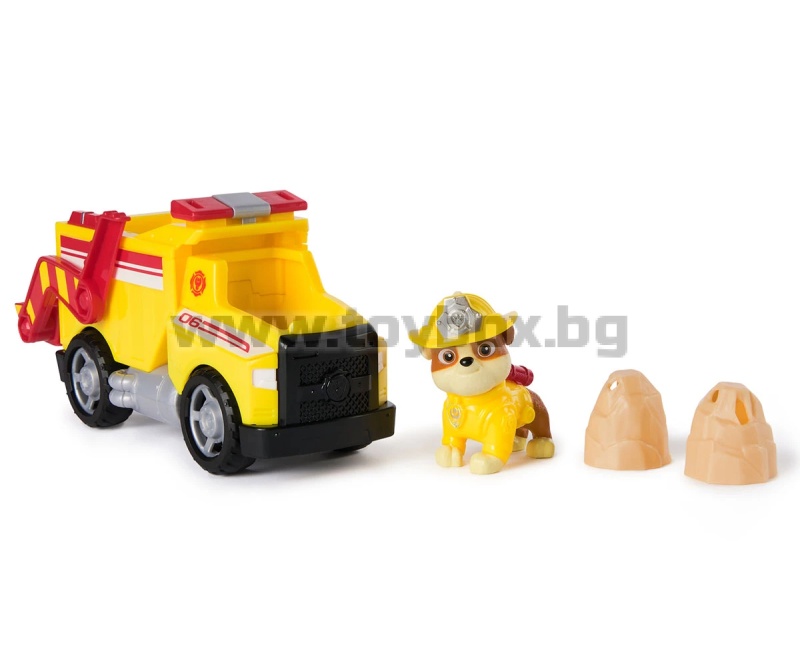 Присъединете се към пожарникарския екип на PAW Patrol с Ръбъл и неговата пожарна кола Rescue Fire! Приготви се за героични мисии и много забавление с пожарната кола на Ръбъл от хитовия сериал PAW Patrol! Този 20 см камион е готов да се впусне в действие – със свободни въртящи се колела и автентичен дизайн, точно както в шоуто! Децата могат да създадат вълнуващи спасителни мисии, като заредят двата включвания на камъка в повдигащата се кофа на камиона, след което да дръпнат загубата и да ги изстрелят, за да спасят деня! Фигурката на Ръбъл е висока над 5 см и е облечена в своето пожарникарско спасително облекло – готова да влезе в действие! Тази интерактивна играчка е перфектен подарък за рожден ден, Коледа или всеки повод, който ще зарадва малките фенове на PAW Patrol.