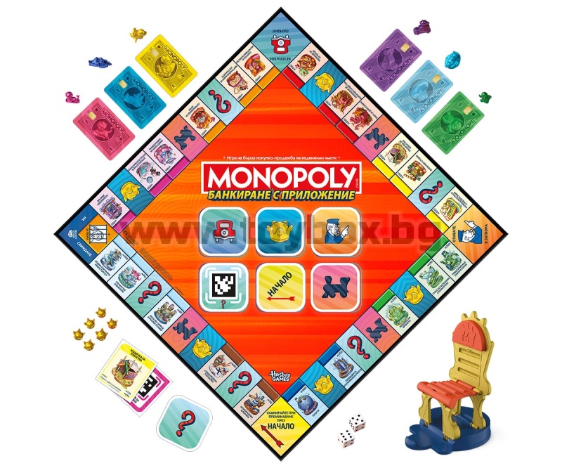 Монополи Банкиране с приложение – първото Monopoly с мобилно приложение! Това е първата версия на Monopoly, която използва приложение за лесно банкиране, мини игри и още много изненади!