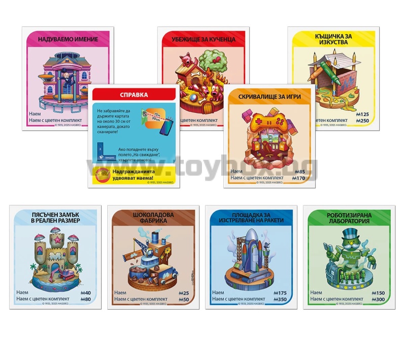 - По-бърза версия – играете се по-бързо от класическото Monopoly, подходяща за ежедневни игри или за семейни вечери;