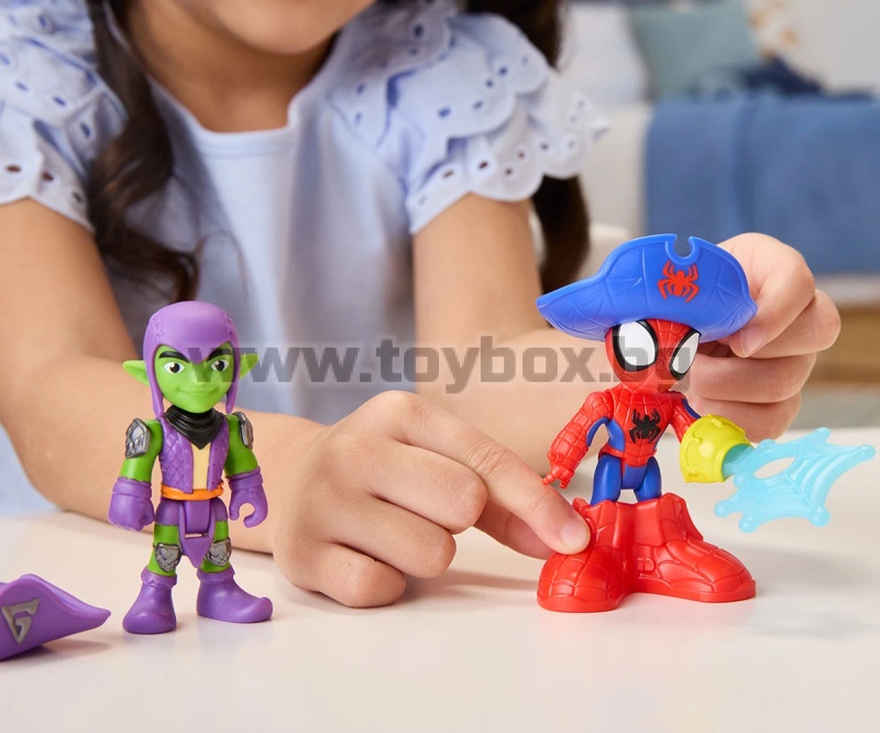 - Фигурки – включени са 2 подвижни фигурки (7.6 см): Spidey и Green Goblin, всяка с отделящи се аксесоари;
