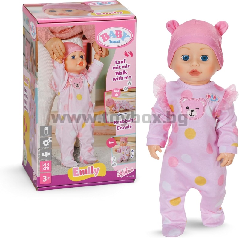 Baby Born - Емили - Разходка с мен 43 см, с функции пълзене и ходене
