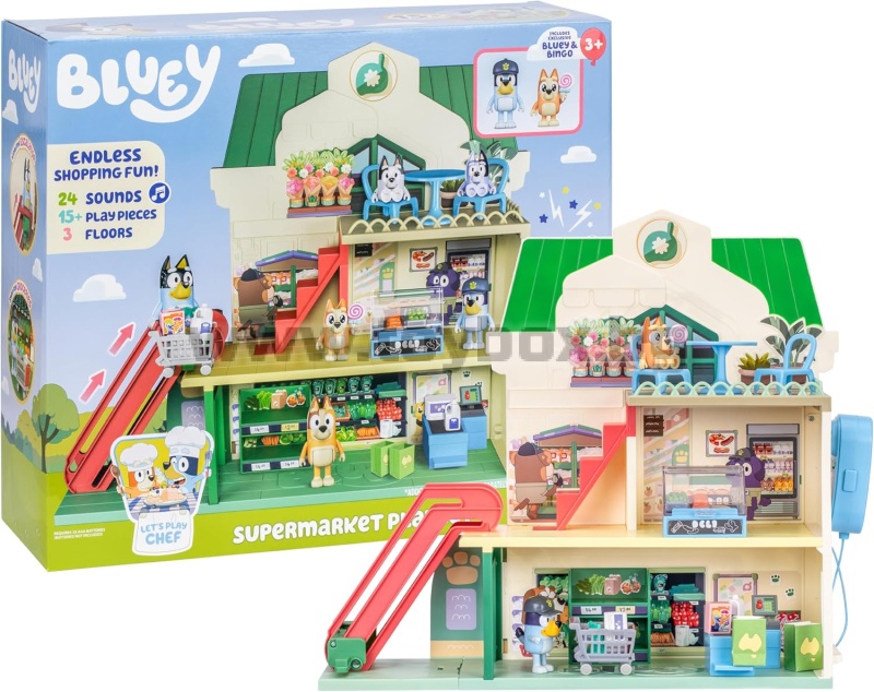 Комплектът за игра „Супермаркет с 3 различни нива и ексклузивни фигурки на Блуи и Бинго