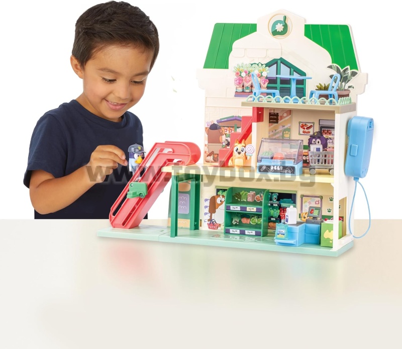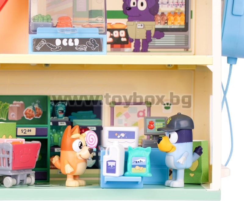 - Внесете въображаемо забавление директно в дома си с комплекта за игра от супермаркета от Bluey!
