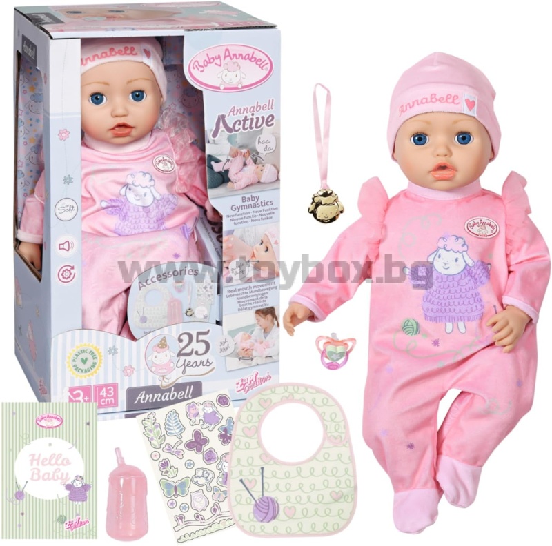 Със сладостта и чара на истинско бебе, Baby Annabell Active Annabell има меко, гушливо тяло и още по-реалистични функции от всякога, готова за любов и грижа на вашето мъниче. Baby Annabell Active Annabell разполага с широка гама от реалистични, интерактивни функции.