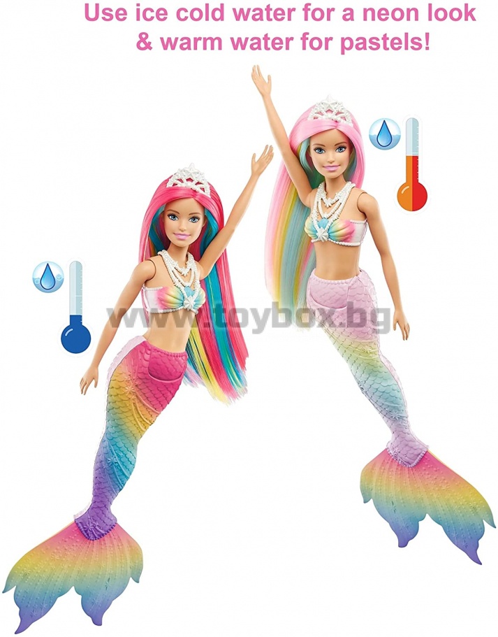 - Играта с куклата Barbie Dreamtopia Rainbow Magic Mermaid е безкрайно забавна благодарение на повтарящата се смяна на цветовете.