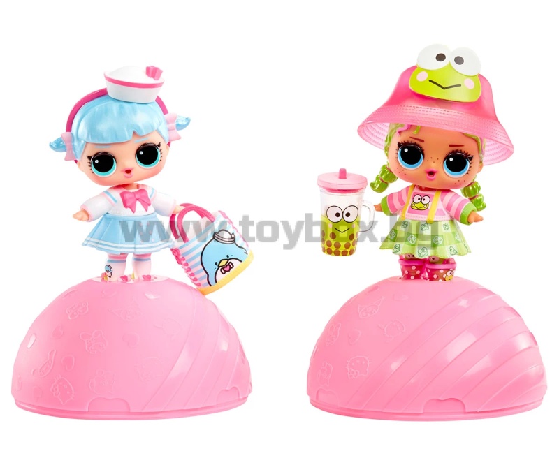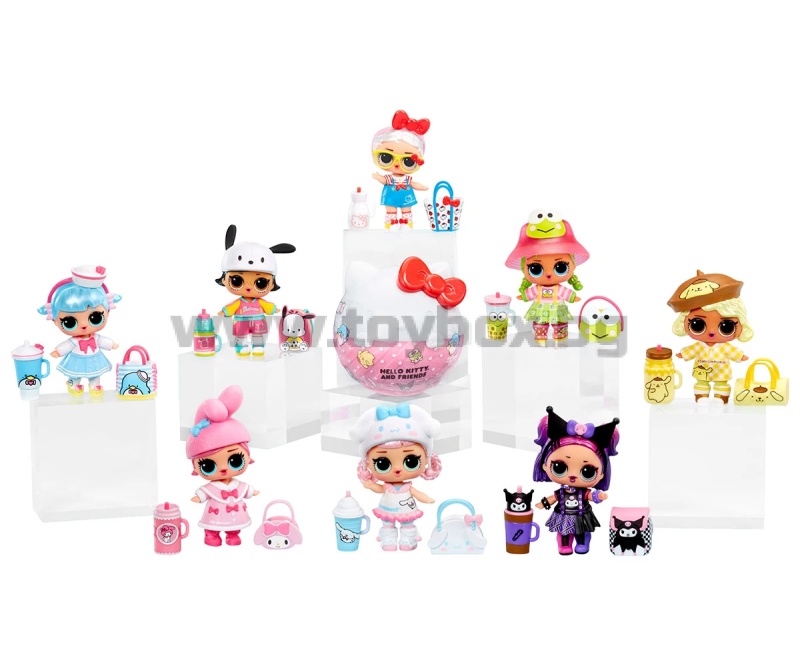 Представяме ограничената серия LOL Surprise Loves Hello Kitty® and Friends Tots! LOL Surprise отново сте партньор с Hello Kitty®, за да представите емблематичните герои Hello Kitty® и приятели, пречупени през стила на 8 чисто нови LOL Tots! Открий какво се крие вътре, когато навлезеш в света на Hello Kitty®, където героите са неустоимо сладки, а приятелството прави всичко още по-забавно! Познайте се с 8 лимитирани LOL Tots, вдъхновени от най-емблематичните герои на Hello Kitty® и приятели като Cinnamoroll™, Pochacco™, Keroppi™ и още много други. Наслади се на най-сладкото разопаковане с уникален дизайн на LOL топка във формат на Hello Kitty®! Всеки герой идва с очарователни изненади, включително прекрасни дрехи и аксесоари, вдъхновени от характерните цветове и дизайни на Hello Kitty® and Friends. С LOL Surprise Hello Kitty® and Friends можеш да се потопиш в света на Hello Kitty® и да празнуваш заедно с всички нейни приятели! Събери и осемте кукли LOL Surprise Loves Hello Kitty® and Friends!