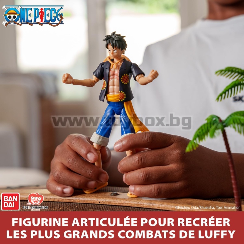 - АКСЕСОАРИ, ВКЛЮЧЕНИ В ДОСТЪПА НА ФИГУРКАТА - С тази съчленена фигурка на Луфи можете да пресъздадете най-великите битки с лъка на Дрессроза, благодарение на включените аксесоари (сменяеми ръце). За да пресъздадете битките на Луфи срещу Дон Кихот Дофламинго!