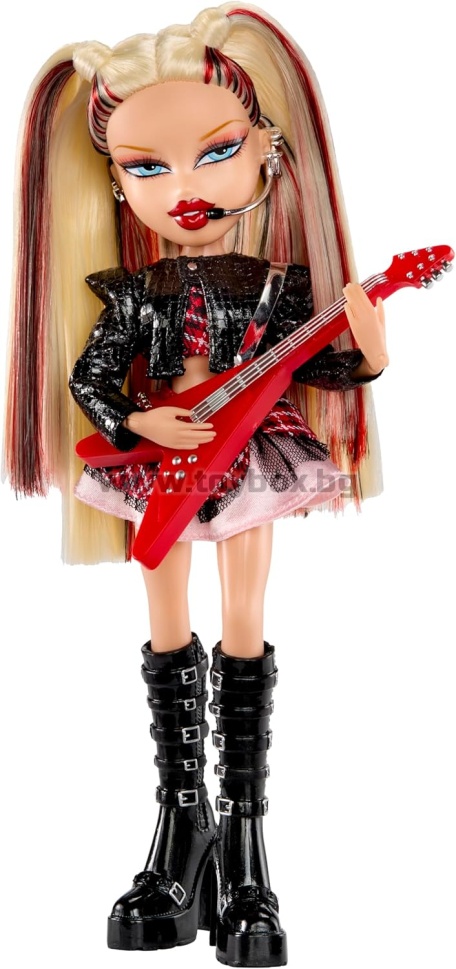 - ВКЛЮЧЕНО: Модел на кукла Bratz Pop Starz, яке, риза, пола, чифт ботуши, китара, слушалки, чифт обеци, висулка, четка за коса и албум