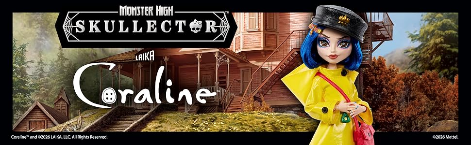 В партньорство с LAIKA, с вълнение представяме интерпретацията на Monster High за героинята, която е в сърцето на обичания стоп-моушън анимационен филм „Коралайн“ . Нашата версия на тази безстрашна изследователка, която може да се сглоби с череп, носи лъскавото си жълто дъждобрано и гумени ботуши с форма на паяжина, и се предлага с набор от аксесоари, препращащи към филма. Ясно е, че тази изключително зловеща кукла не е направена от Белдам... но не можем да обещаем същото за парцалената кукла-двойник с очи като копчета, която държи. За щастие, Коралайн има и верен приятел котка, който е с нея по време на нейното зловещо пътешествие в Другия свят и обратно.
