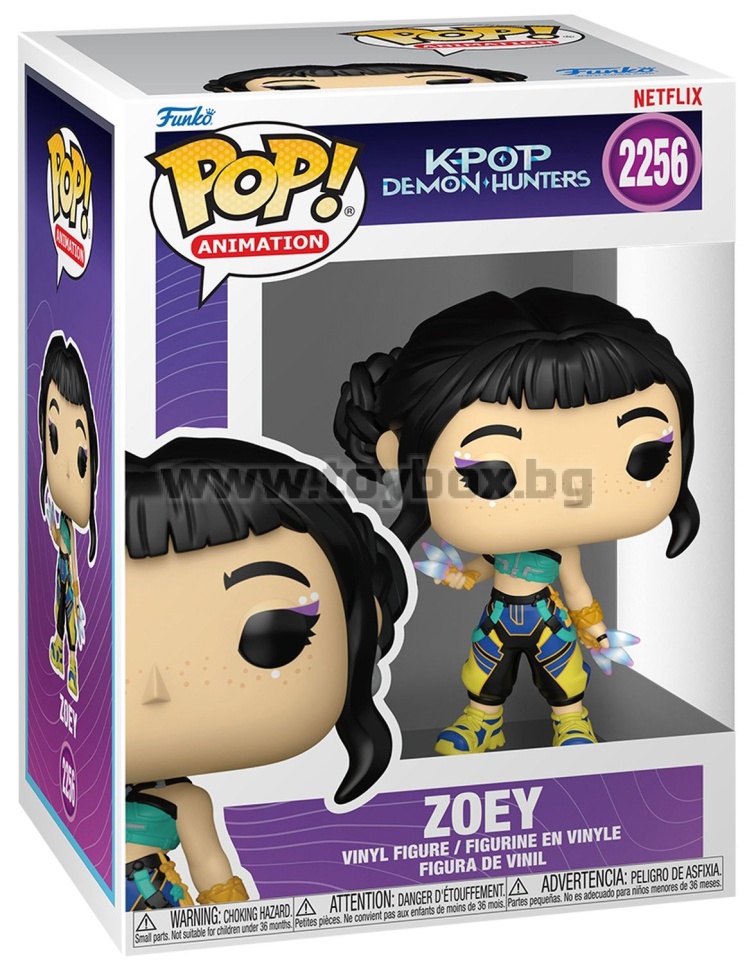 Ако KPop Demon Hunters е заел първото място в списъка ви с любими филми, то тогава ще харесате тази страхотна POP! фигура от компанията Funko. Ето я и Zoey - рапърка и текстописец на Huntr/x, която използва ножове shinkal в битка. Хитовият филм проследява момичешката K-pop група Huntr/x, която води двойствен живот като ловци на демони. Те се изправят срещу съперническата момчешка група Saja Boys, чиито членове тайно са демони.
